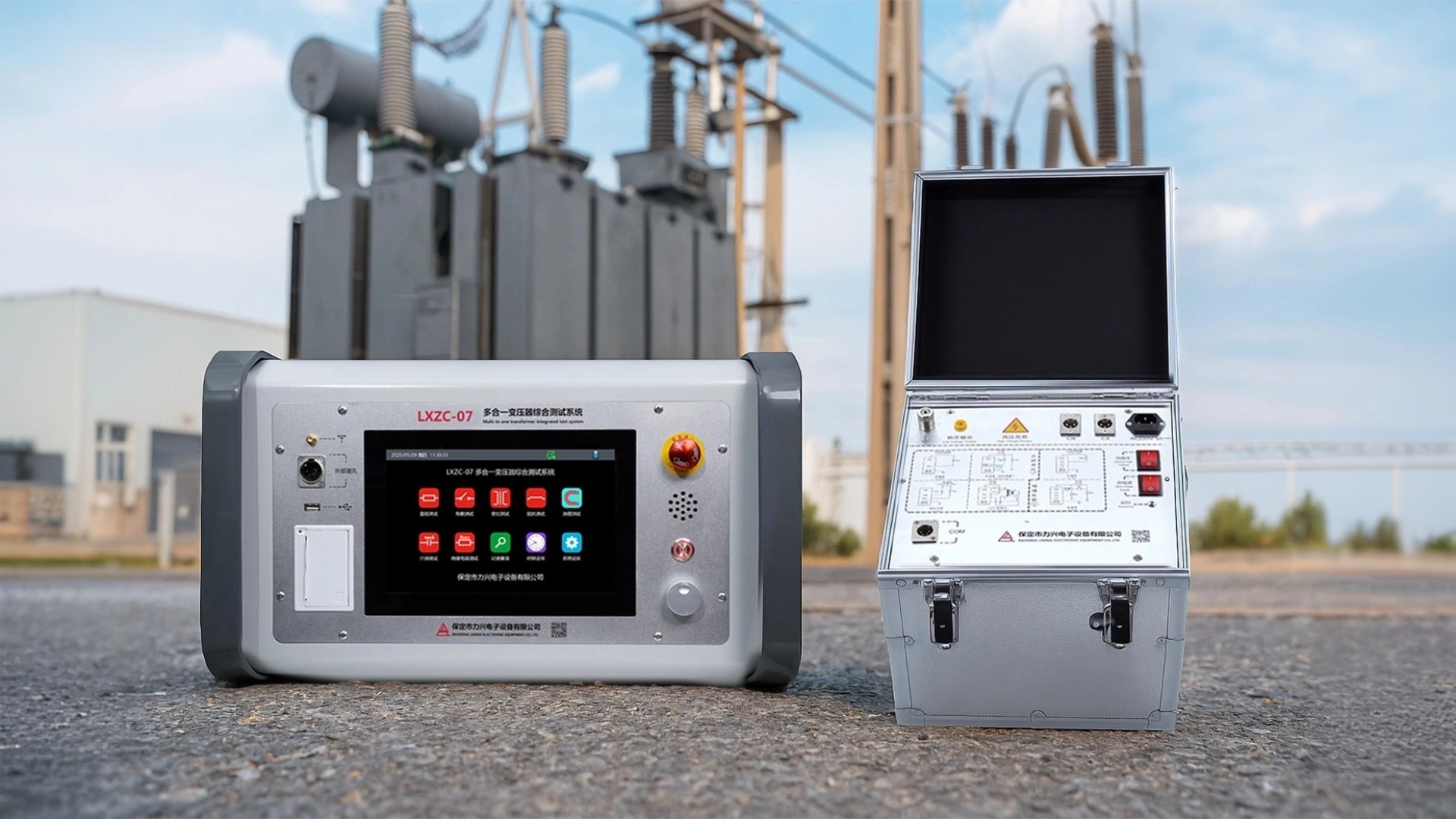 该仪器为大容量锂电池供电的五合一配电变压器测试系统(直阻+变比+绝缘电阻+能效等级+回路电阻),仅需要一套设备,可以完成五个项目的测试,不需要频繁的拆接测试线。